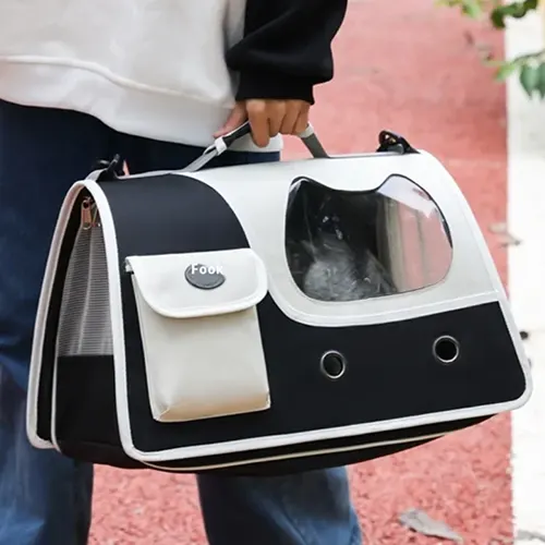გადასაყვანი ჩანთა ფისოს ჭრილით, შავი